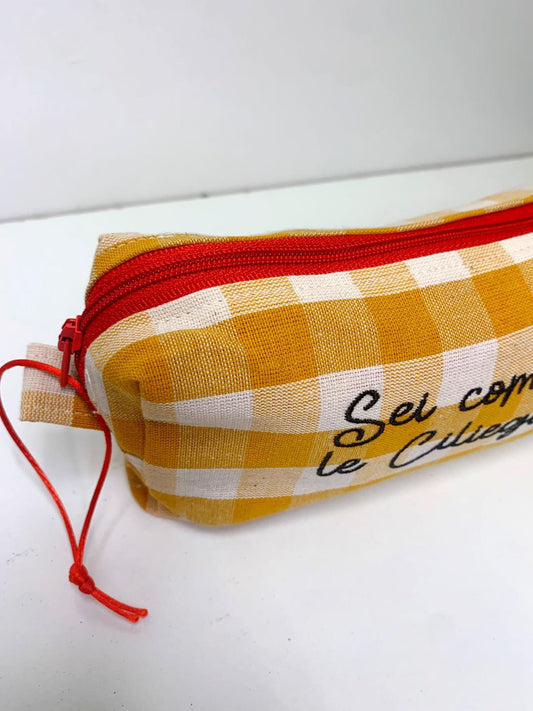 Astuccio /pochette canapa cotone ricamata "sei come le ciliegie"