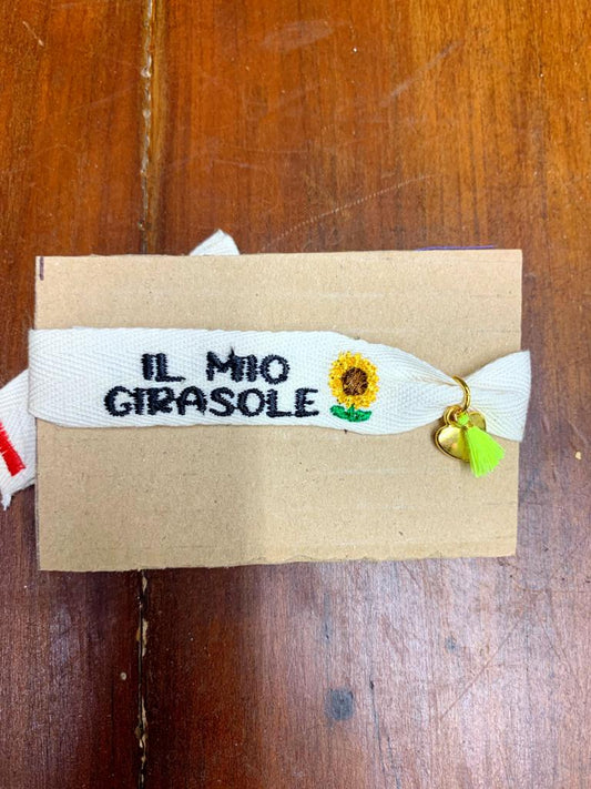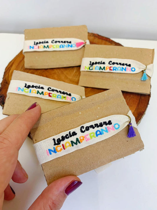 Braccialetti in cotone ricamati con le frasi del cuore.Su richiesta Personalizzabili con la frase preferita.